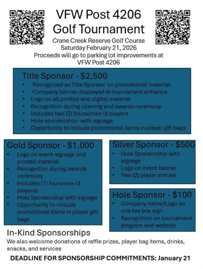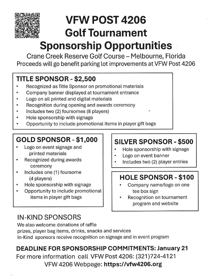 VFW POST 4206 ANNUAL GOLF TOURNAMENT